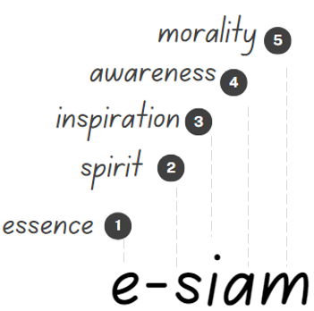 e-siam อ่านว่าอีไซแอม นอกจาก e จะมาจากคำว่า electronic และ siam จะหมายถึงสยามประเทศแล้ว ที่นี่เราหมายถึงปรัชญาหรือหลักคิดจากตัวอักษรแต่ละตัว ที่เราเชื่อว่าหากใครคนใดคนหนึ่งได้เข้าถึงแล้ว ก็สามารถที่จะทำสิ่งต่างๆได้สำเร็จ ร่วมค้นหาข้อมูลที่ e-siam ไปด้วยกัน